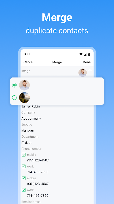 Automatycznie identyfikuj i scalaj zduplikowane kontakty, zachowując jednocześnie cenne dane i zdjęcia.
