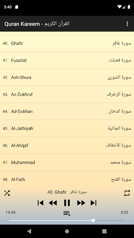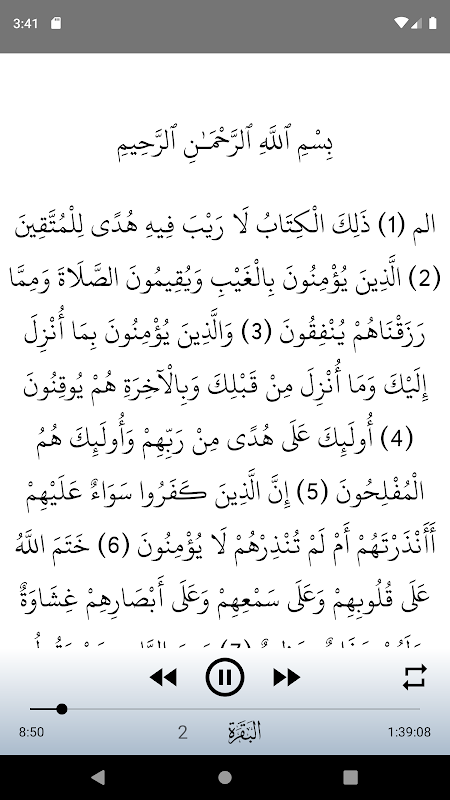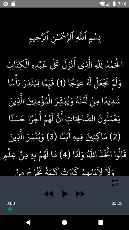 - Możliwość zatrzymania się, gdy sura kończy się automatycznie