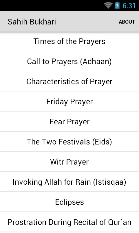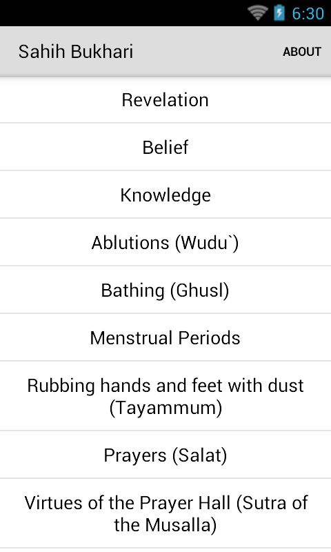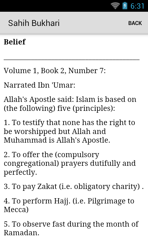 Ta aplikacja zawiera tekst z Sahih Bukhari w łatwej do odczytania formie.