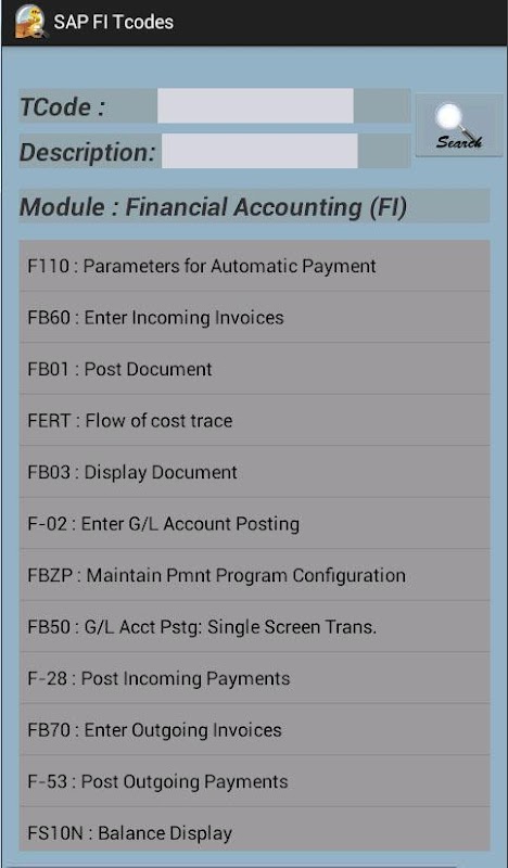 Transaction Codes from the SAP Module Financial Accounting (FI)