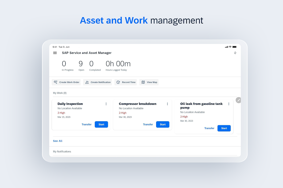 SAP Service and Asset Manager to nowa aplikacja mobilna, która wykorzystuje rdzeń cyfrowy z SAP S/4HANA, a także SAP Business Technology Platform jako platformę chmurową do zarządzania zleceniami pracy, powiadomieniami, monitorowaniem stanu, zużyciem materiałów, zarządzaniem czasem i analizą awarii . Obsługuje wiele osób do zarządzania zasobami, usługami terenowymi i zapasami w jednej aplikacji, umożliwiając wysoko wykwalifikowanym pracownikom wykonywanie ich pracy dzięki złożonym informacjom i logice biznesowej, które są zawsze dostępne, niezależnie od tego, czy są podłączeni do sieci, czy pracują w środowiskach offline.