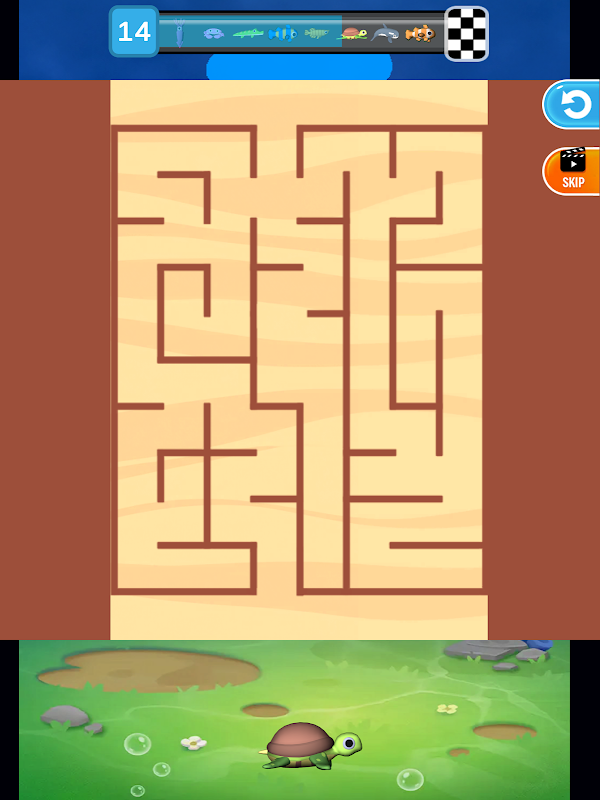 wersja labiryntu gry logicznej „Ratuj rybę”