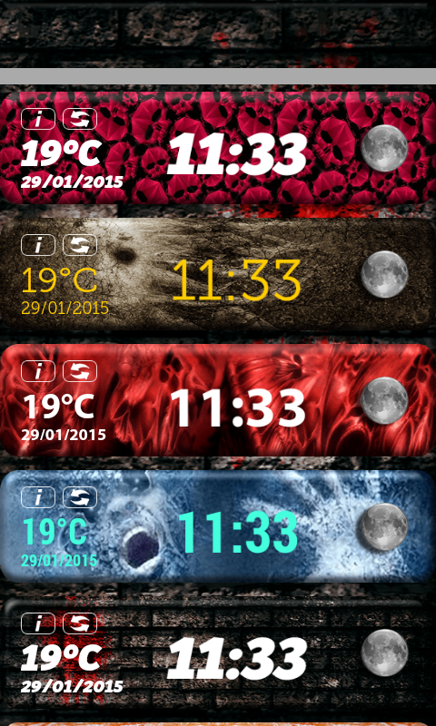 Nie tylko będziesz miał niesamowite zegar cyfrowy będą również warunki pogodowe na ekranie. Lokalna prognoza pogody, a świat jest już dostępna za darmo. Nie musisz oglądać kanał pogody już zobaczyć prognozę pogody. Pobierz ten widget i zobaczyć, czy pada deszcz, śnieg, czy jest słonecznie na zewnątrz.Najlepszym "widget pogody" jest już dostępny zobaczysz co jest temperatura i zarówno stopniach Celsjusza i Fahrenheita jednostki miary są dostępne! Pobierz ☠Straszny Zegar Pogoda Widgety ☠ i przekształcić swój telefon w coś przerażającego i upiorny. Wystarczy wybrać zegar cyfrowy i uzyskać niepowtarzalny straszny widget!