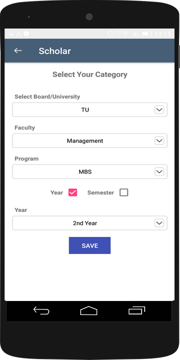 Scholar Mobile Application is developed by the students for the students. This application provides you a complete set of question bank of your course/s. Once you download the questions you can view by subject, year or by chapter offline. Put your unsolved questions on the unsolved list; put your solved questions on the solved list. Go online to search the answer/s of your unsolved questions on My Feed. Many of the students might put multiple answers of your unsolved questions; choose the best answer/s, save on your device. Many of the students might be looking for the answers of those questions of which you have the solution. Share your answer of that question which you know. Contribute by answering those questions; your answer has a great importance to others. This is a common platform of the students to give and take the answers of the questions.
