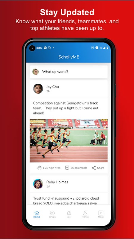 Potencjalni studenci-sportowcy korzystają z mediów społecznościowych odkąd pamiętają. SchollyME to bezpłatna aplikacja mobilna nr 1, która umożliwia wszystkim uczniom-sportowcom korzystanie z mediów społecznościowych w celu osiągnięcia czegoś konkretnego, na przykład prezentowania swoich sportowych talentów trenerom uczelni w nadziei na otrzymanie stypendium sportowego.