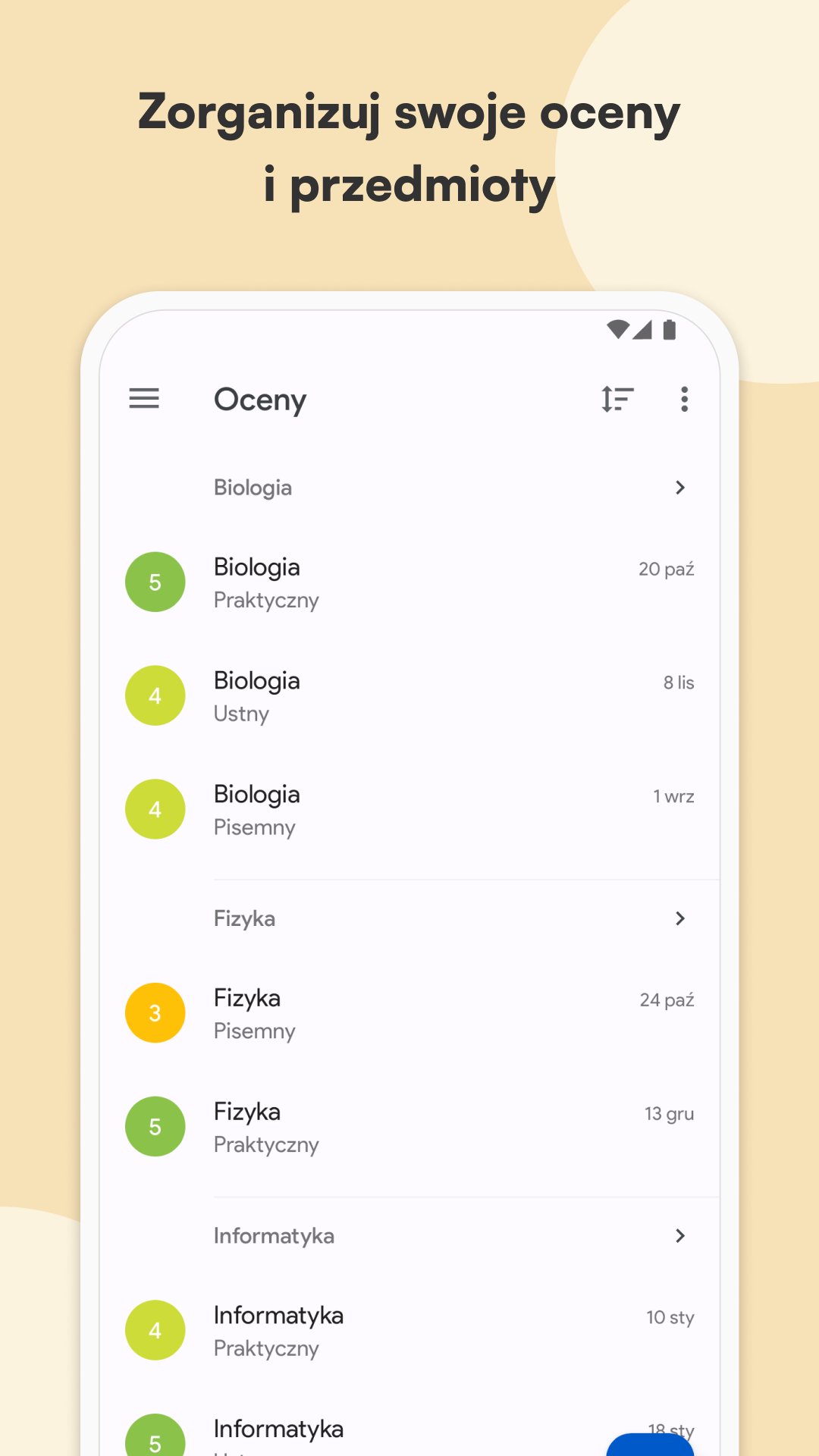 Zarządzaj ocenami oraz przedmiotami i śledź swoje postępy dzięki automatycznemu obliczaniu średniej.