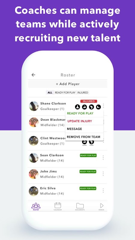 Track injuries for each player on your roster and know which players are Ready for Play.