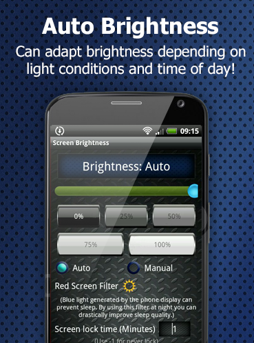 Screen Brightness can work as a brightness dimmer more powerful than that of the normal android system, and allows for finer control.