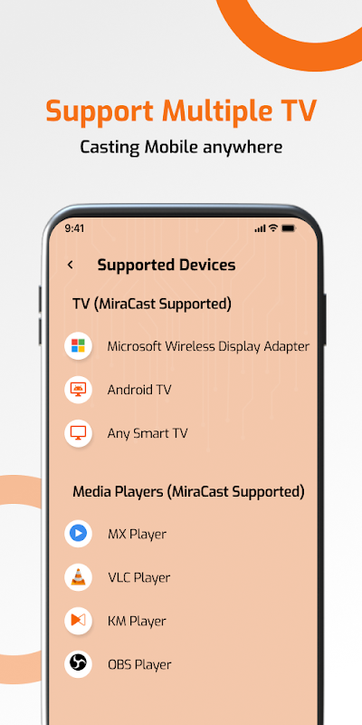 Przyjazna dla użytkownika aplikacja Miracast dla ScreenCast do tworzenia kopii ekranu: łatwo i pewnie poruszaj się po naszych funkcjach tworzenia kopii lustrzanych i udostępniania ekranu dzięki naszemu intuicyjnemu interfejsowi użytkownika. Niezależnie od tego, czy jesteś nowicjuszem, czy doświadczonym użytkownikiem, nasza funkcja tworzenia kopii ekranu dla roku zapewnia płynne i przyjemne korzystanie z funkcji tworzenia kopii ekranu dla wszystkich.
