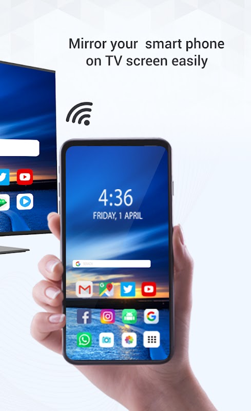 Wszystkie transmisje telewizyjne w jednej aplikacji możesz przesyłać strumieniowo mobilną transmisję strumieniową ze wszystkich inteligentnych telewizorów Samsung, LG TV, Sony, Hisense, Xiaomi, Panasonic i wszelkiego rodzaju Smart LCD.