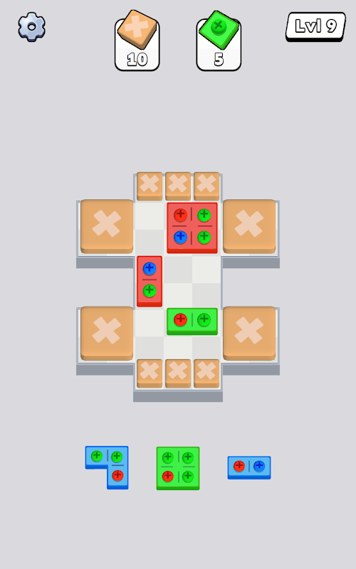Podczas gry śruby na sąsiednich elementach będą się zamieniać i próbować dopasować ich kolory. Kiedy element zbierze wystarczającą liczbę pasujących śrub, uzupełnia się i znika, zwalniając miejsce na nowe elementy. Ale uważaj – jeśli plansza się zapełni, gra się kończy! Każdy poziom sprawdza Twoje umiejętności planowania i rozwiązywania problemów, gdy pracujesz nad ukończeniem określonej liczby elementów, zanim zabraknie miejsca.