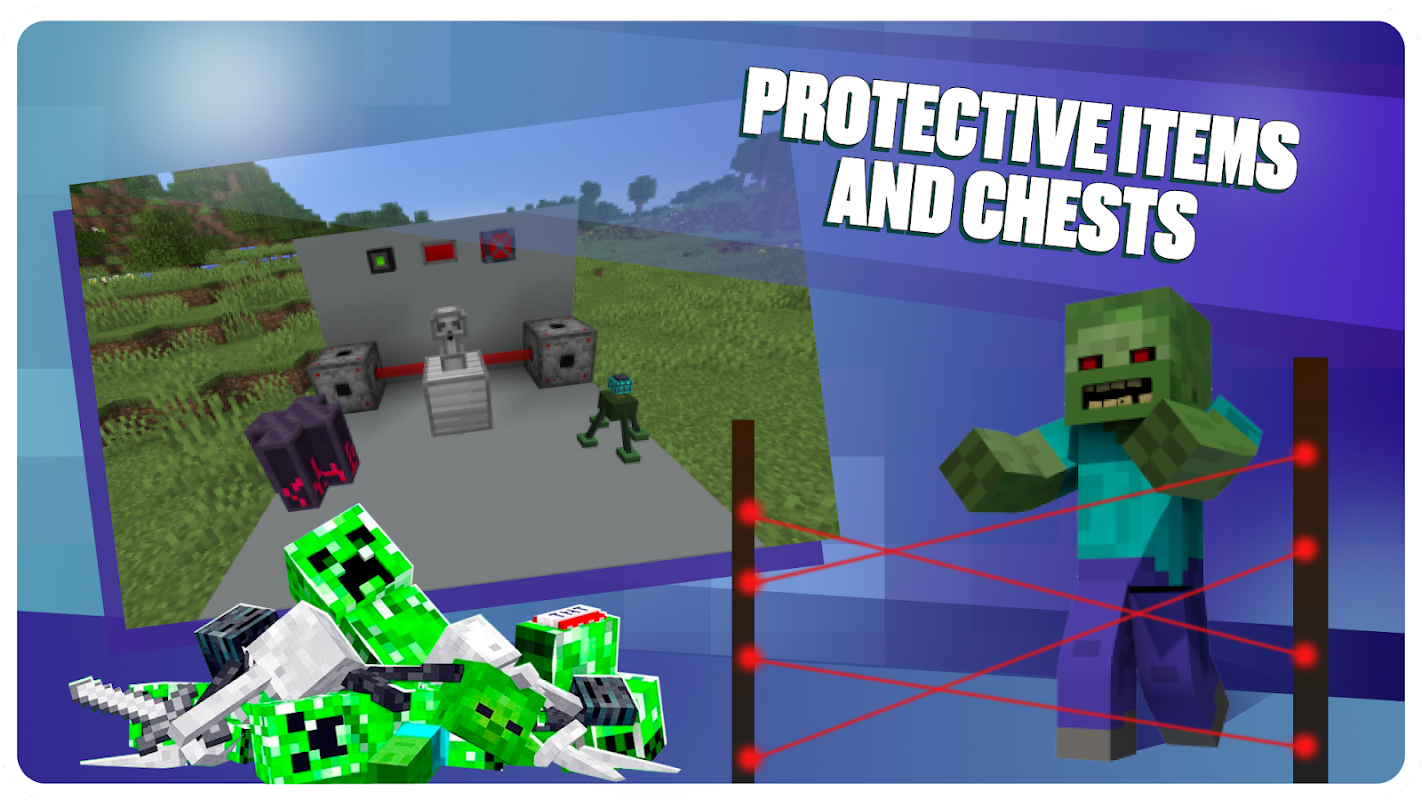 Security Craft Mod dla MCPE Bedrock doda do gry kilka interesujących sztuczek, aby pomóc przetrwać w świecie bloków. Bezpieczeństwo Mody Minecraft zadbają o bezpieczeństwo wszystkiego, co jest dla Ciebie ważne. Dodatki zawierają więcej przedmiotów do gry Minecraft, takich jak kamery bezpieczeństwa, różne silne bronie i wytrzymałe materiały.