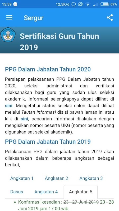 Info update pengumuman pendaftaran sertifikasi guru (SERGUR), persiapan pelaksanaan PPG Daljab (Pendidikan Profesi Guru Dalam Jabatan), seleksi administrasi dan verifikasi bagi guru yang sudah lulus seleksi akademik / pre test PPG.
