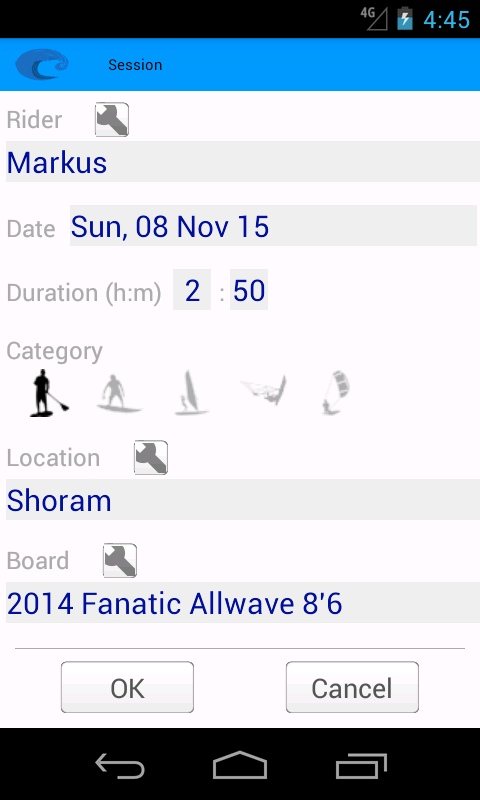Session Tracker umożliwia śledzenie wszystkich sesji windsurfingu, kitesurfingu, wingsurfingu, surfingu, SUP, WindSUP i Foilingu. Możesz dodać cały swój konkretny sprzęt, a następnie rejestrować każdą sesję, w tym warunki pogodowe, statystyki GPS i szczegóły lokalizacji.