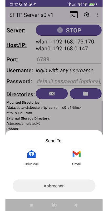 SFTP Server s0 v1 is a Secure File Transfer Server App, compatible with all Android devices down to Android Version 5.0 “Lollipop” and offers preference based automatic public key handling.