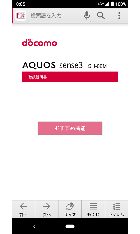 取扱説明書を閲覧できるだけでなく、フリーワード検索や表示中のページから設定画面やアプリを直接起動できるなど、SH-02Mをより便利にお使いいただけます。