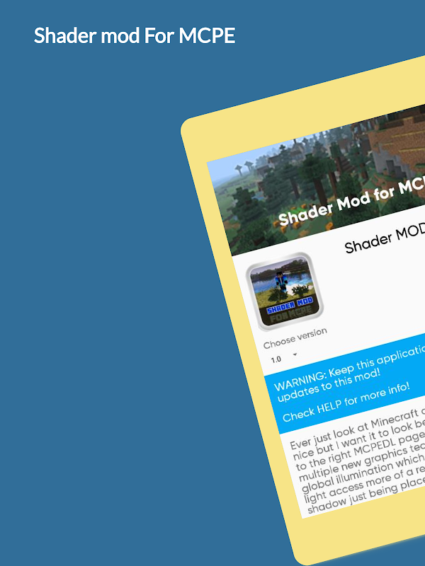 Shader Addon for MCPE is an application that give you the easiest way to install Shader Addon into your Minecraft world.