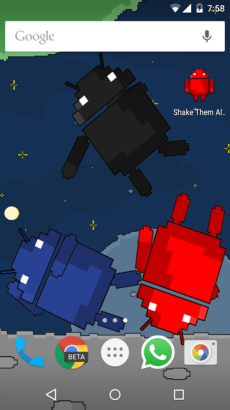 Shake Them All Live Wallpaper 2 to niesamowita tapeta na żywo w pełni odnowiona z postaciami z Androidem, które unoszą się na ekranie. Potrząśnij urządzeniem, aby rozpocząć zabawę, zmienić kontrolę grawitacji, postacie, tła i nie tylko.