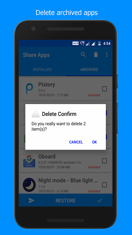 > Apk Installer :You can restore your archived apk files i.e. you can install your saved apk files back.