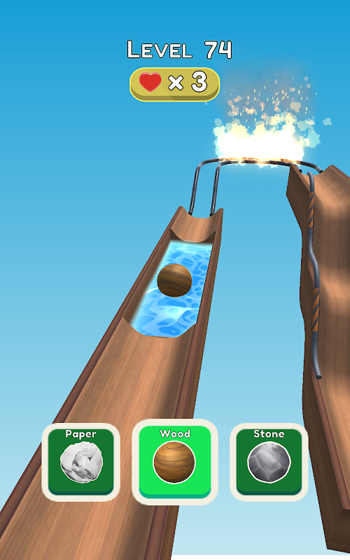 Przełączaj się między papierową piłką, drewnianą piłką i kamienną piłką, aby omijać przeszkody.
