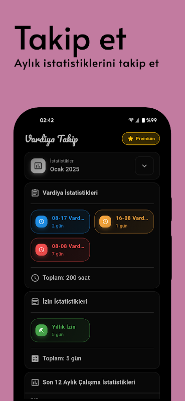 • Statystyki Zmian i Urlopów: Przeglądaj czasy pracy i urlopów na szczegółowych wykresach.