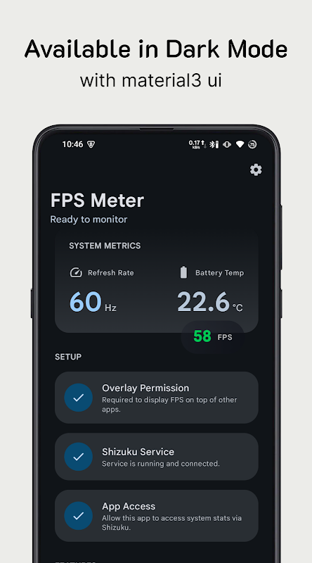 Natychmiast monitoruj wydajność, dostosuj system i ciesz się płynniejszą rozgrywką dzięki Shizuku FPS Meter.