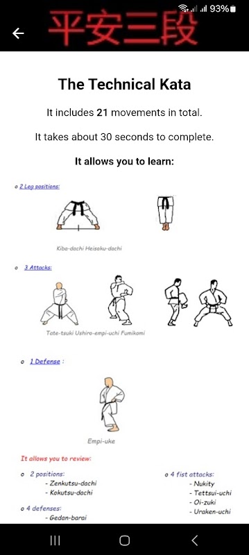 ▪ Formy karate (Kata): Naucz się pięciu form kata Heian (Shodan, Nidan, Sandan, Yondan, Godan) dzięki samouczkom krok po kroku i analizie ruchu.