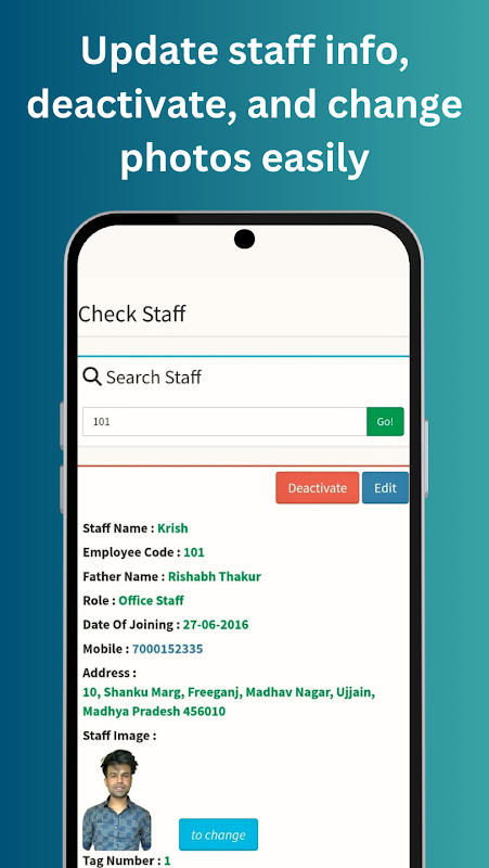 - Zarządzanie personelem: przeglądaj listę pracowników i aktualizuj dane personelu, w tym zdjęcia personelu.