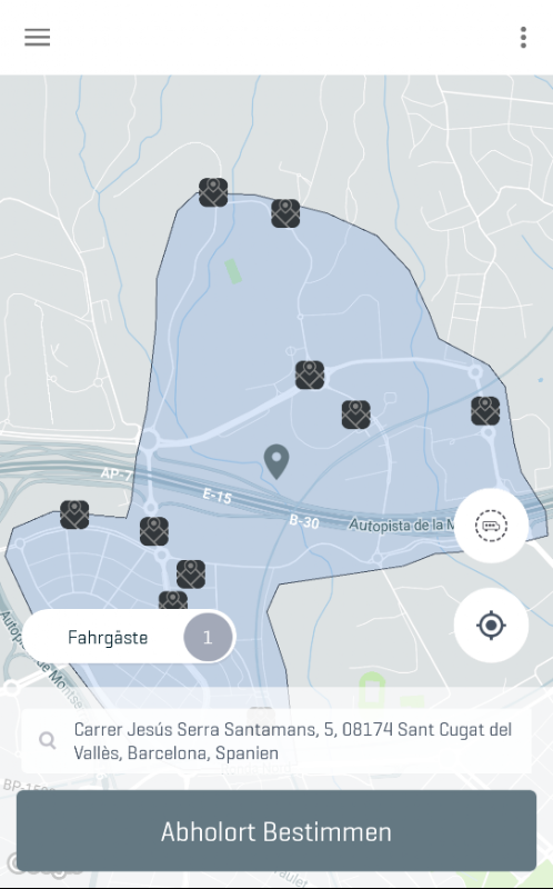 auf der Karte angezeigt. Die App nennt dir die maximale Wartezeit bis zur Abholung.