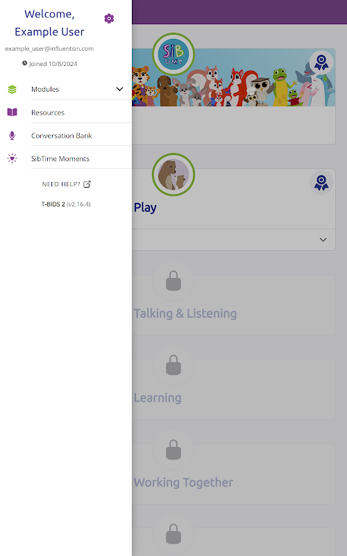 SibTime zawiera wciągające funkcje, do których rodzice/opiekunowie i dziecko mogą mieć wspólny dostęp, takie jak filmy akcji na żywo, na których małe dzieci dzielą się z rodzicami swoimi pytaniami i uczuciami, animowane historie społecznościowe przedstawiające różne rodziny zwierząt poruszające się po doświadczeniach rodzeństwa oraz interaktywne ćwiczenia refleksyjne, które pomagają dzieci zastanawiają się nad własnymi doświadczeniami i uczuciami oraz pomagają rodzicom/opiekunom usłyszeć myśli i doświadczenia ich małych dzieci.