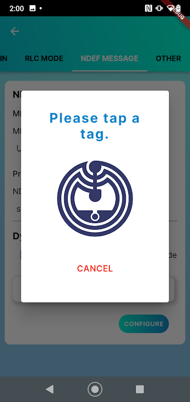 W tej aplikacji istnieje tryb odczytu i tryb zapisu, który jest przeznaczony do użytku z tagami SIC43NT i SIC43NTG2 NFC. Po prostu przyłóż smartfon do tagu i wybierz „odczyt”, aby uzyskać informacje, lub „napisz”, aby zapisać informacje i skonfigurować tag.