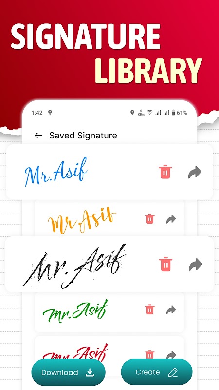 Signature Maker to łatwa w obsłudze i bezpieczna aplikacja do tworzenia i używania podpisów cyfrowych oraz podpisów elektronicznych bezpośrednio z Twojego telefonu z Androidem. Idealna dla profesjonalistów, studentów, freelancerów oraz każdego, kto potrzebuje szybko i wygodnie podpisać dokumenty, formularze lub zdjęcia.