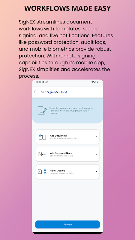 Podpisywanie dokumentów jest praktycznie natychmiastowe i można je wykonać z dowolnego miejsca. SigNEX Cloud może zagwarantować, że ta zwykle czasochłonna operacja zostanie wykonana w ciągu kilku minut!
