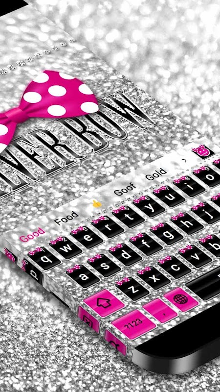 Silver Bow Keyboard which has beautiful diamond glitter wallpapers and pink bowknot app icons.
