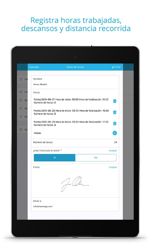 Simlapp también funciona offline y permite guardar como borrador formularios para poder terminarlos en otro momento. La app de formularios digitales funciona en smartphones y tablets pero también en cualquier ordenador u otro terminal con el navegador usando nuestro Webclient (app versión escritorio). Aparte puedes enviar encuestas u otros formularios web a usuarios sin cuenta de Simlapp. Ingresa el email del cliente en el formulario y directamente recibirán un email con un informe en PDF o Word con todos los datos que hayas capturado con tu formulario digital.