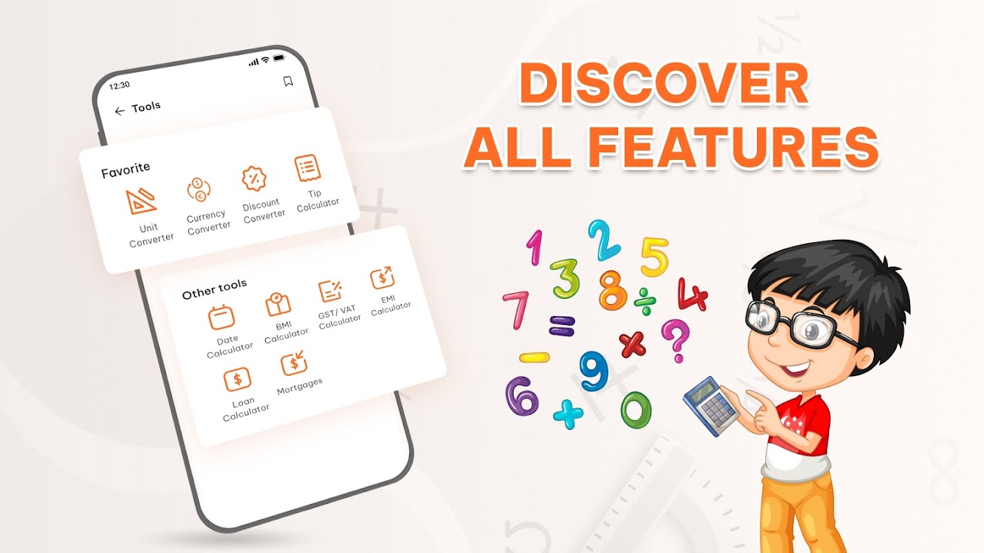 Ta wszechstronna aplikacja kalkulatora matematycznego oferuje przyjazną dla użytkownika obsługę dzięki przejrzystemu interfejsowi i praktycznej funkcjonalności. Od podstawowych obliczeń po przeliczanie walut, przeliczanie jednostek, obliczenia procentowe po dzielenie napiwków i wiele więcej, jest to najlepsze narzędzie do wszystkich codziennych potrzeb obliczeniowych, takich jak kalkulator kredytowy, kalkulator hipoteczny.
