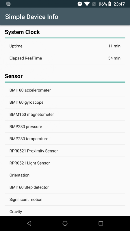 Prosta aplikacja wyświetlająca informacje o urządzeniu.