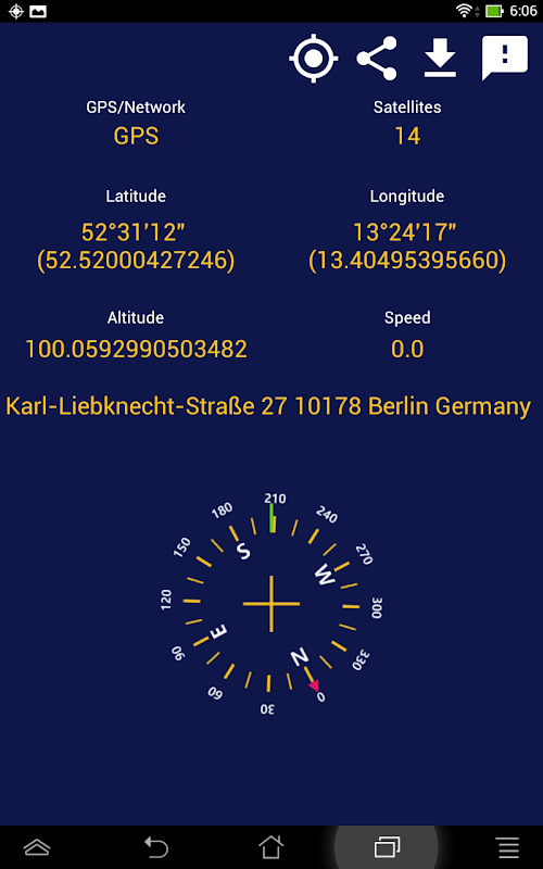 3. Sprawdź & Share współrzędne GPS i adres bieżącej lokalizacji.