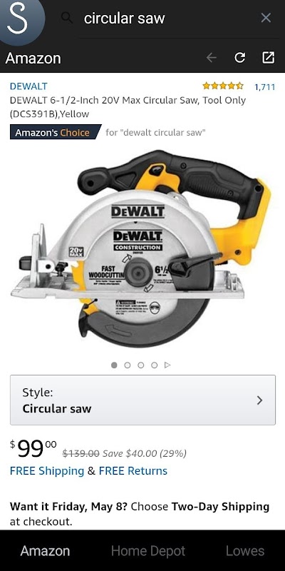 With Simply Shop you get to choose the sites you know and trust. You can search up to 4 major retail sites all with a single search. Easily tab back and forth between them to compare products, prices, and reviews. At anytime, you can launch the native website or app that you're shopping directly. Save time. Save money. It's that simple.