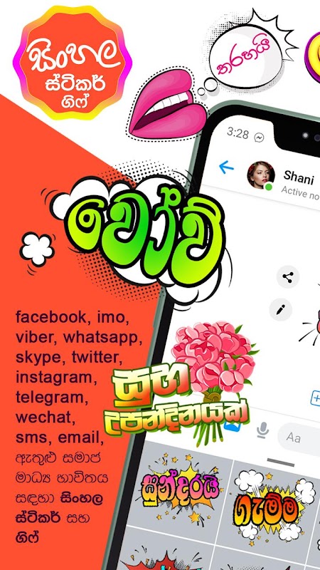 Facebook, WhatsApp, Instagram, Twitter, Skype, Viber, Imo, Wechat, Telegram, SMS-y සහ සහ පණිව්ඩ යැවීමට හා සුභ පැතීමට විනෝදාත්මක, ආකර්ශණිය සිංහල ස්ටිකර් Png ස්ටිකර් Gif වශයෙන් සහ යෙදුම මෙම තුළින් ලබා ගත හැක. සිංහල වදන්, ජයාරූප ඇතුළත් වදන්, සුභ පැතුම් සහ ආශිර්වාදාත්මක වදන් ng png සහ gif මෙහි ඇතුළත් වේ.