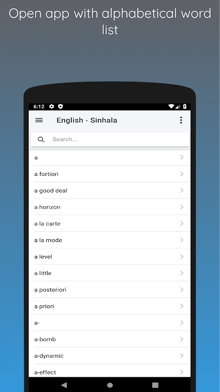 Jako pierwszy w historii słownik syngalesko-angielski w Android Market, ta aplikacja obsługuje także tłumaczenia z języka angielskiego na tamilski, syngaleskiego na angielski i tamilskiego na syngaleski.