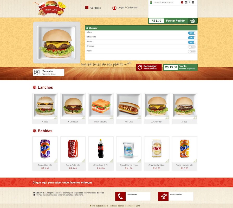 Internetowy system zamawiania pizze, przekąski, dania, porcje. demonstracja