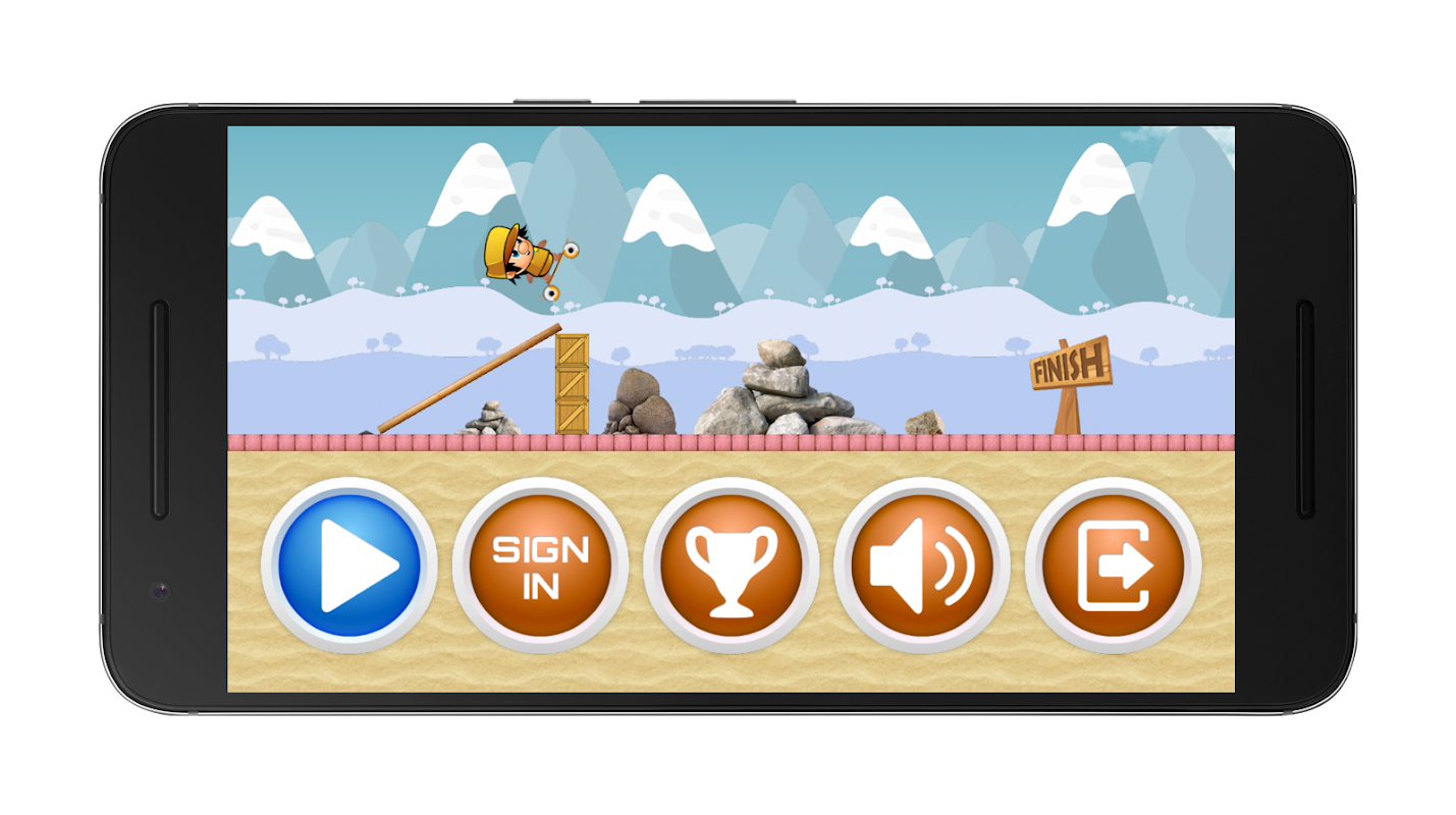 Tap the two buttons on the left bottom screen to move back and accelerate ahead. While the right bottom side to jump as high as you can and avoid obstacles. Make cool tricks for landing.