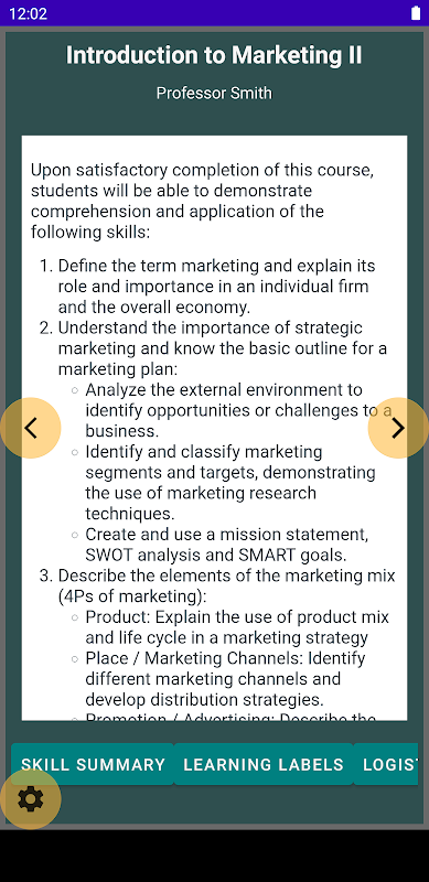 An app designed for on the go managing of tasks, resources, and learning labels from a syllabus. A Skill Syllabus includes all the same fields of a regular syllabus plus learning labels (definitions of learning in skills and skill quantifiers).
