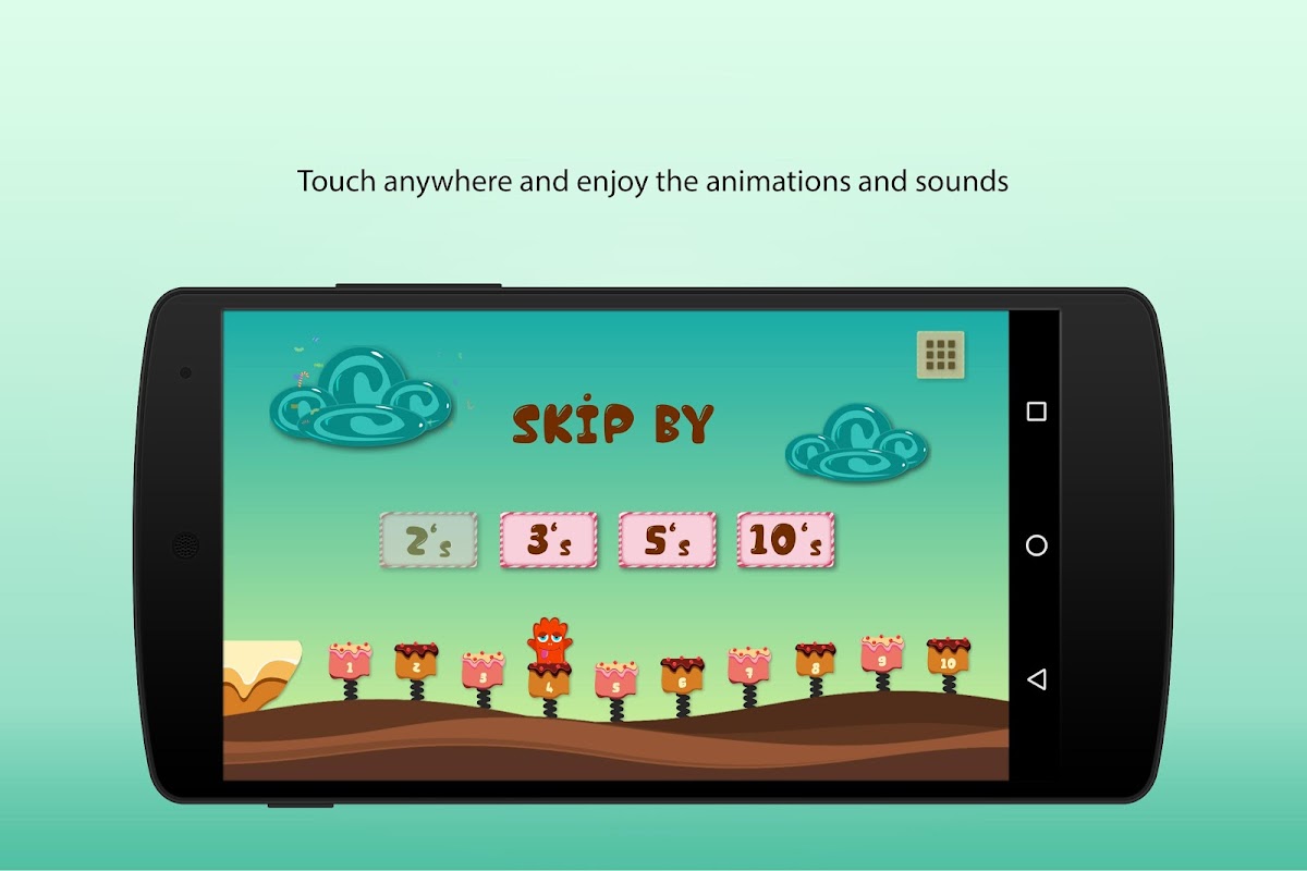This educational application helps kids understand and learn the multiplication concept of Counting by 5’s, 2’s, 3’s and 10’s like playing a skip counting game.