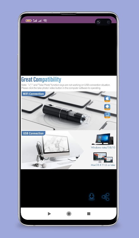 skybasic przewodnik po mikroskopie Mikroskop WiFi i USB】 - Jest to bezprzewodowy ręczny mikroskop cyfrowy, który został zaprojektowany do pracy z Twoim mobilnym urządzeniem z systemem Android lub iOS (otwórz urządzenie Wi-Fi, aby połączyć się z hotspotem Wi-Fi mikroskopu), kompatybilny również z komputerami z systemem Windows lub Mac (przez kabel USB). Jeśli kabel USB jest niedostępny, poinformuj nas o bezpłatnej wymianie.