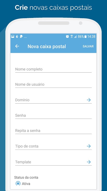Com seu aplicativo terá o controle das suas caixas postais, domínios e grupos de e-mail na palma da sua mão.