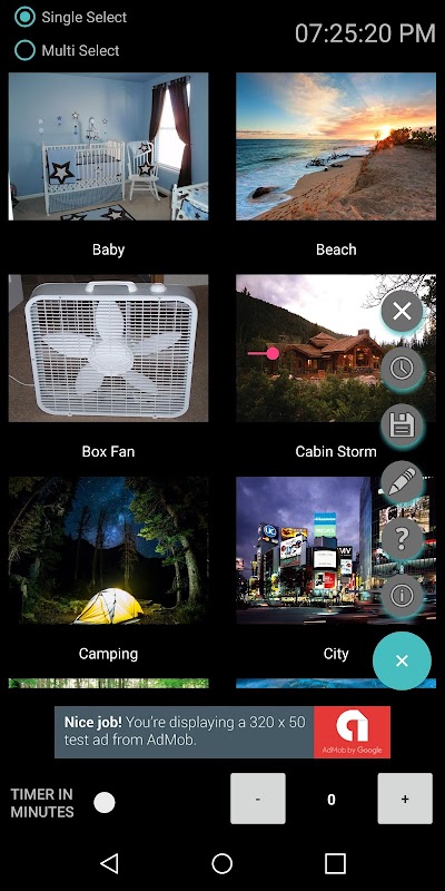 * Single Select to play one sound at a time or Multi Select to mix and match the sounds