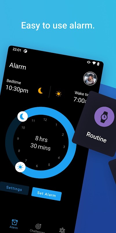 ✔ Łatwy w użyciu alarm do kontrolowania pory snu, budzenia i całkowitej liczby godzin snu.