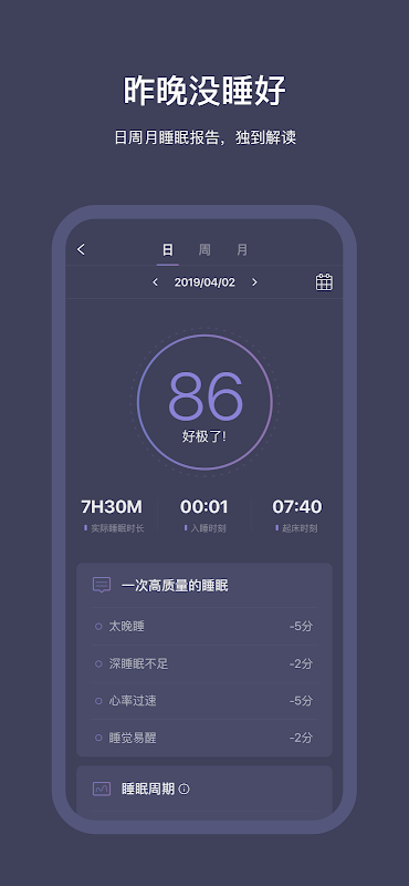 SleepNote focuses on sleep monitoring and sleep-aid, we have these 3 main features for you to create better sleep:
